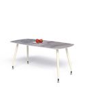 Chất liệu: Bàn ăn chân sắt ống Ø50 tóp côn, liên kết với chân tăng chỉnh mạ Niken bằng khớp nối nhôm hợp kim cao 5cm. Khung đỡ mặt bàn bằng thép hộp 25x50, sơn đen sần hoặc kem. Mặt đá ceramic dày 12mm.