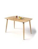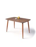 Chất liệu: Bàn ăn chân gỗ cao su sơn màu nâu cánh gián hoặc vàng tự nhiên, khung mặt bàn thép hộp 25x50 sơn đen sần. Mặt bàn gỗ cao su ghép thanhdày 20mm. Mặt bàn có 2 màu như chân gỗ.