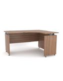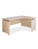 Bàn BLP16-CG thuộc dòng bàn góc phải 1.6m. Bàn chân gỗ có mặt và chân bàn liên kết với nhau bằng các giá đỡ và có thiết kế chân tăng chỉnh chống xước sàn và điều chỉnh thay đổi độ cao.