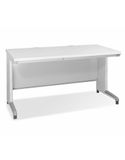 Chất liệu: Mặt bàn phủ laminate màu vân gỗ dày 25mm. Khung bàn và yếm bằng thép sơn tĩnh điện màu kem.