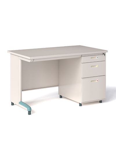 Chất liệu: Bàn sắt 1 hộc liền 3 ngăn kéo HBS, mặt bàn chân bàn và yếm làm từ thép tấm gấp sơn tĩnh điện màu kem