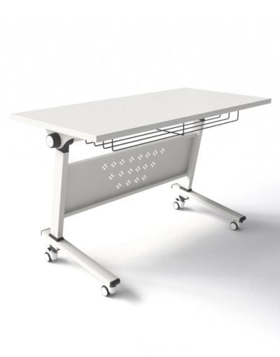 Chất liệu: Bàn huấn luyện 1m2/ 1m4, có khay bàn bằng thép đặc F5 sơn trắng, bánh xe di động có hãm. Mặt bàn có thể gấp xếp gọn qua núm xoay ở hông bàn. Chân thép hộp chữ nhật 30x60, khung và chân bàn sơn trắng.