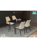 Chất liệu bàn : Bàn ăn chân sắt ống Ø 50 tóp côn. Khung đỡ mặt bàn bằng thép hộp 25x50, sơn đen sần hoặc kem. Mặt bàn bằng đá ceramic dày 12mm.