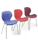 Chất liệu: Ghế tựa lưng liền bọc vải nỉ, nẹp nhựa viền mạ trắng, chân sơn.