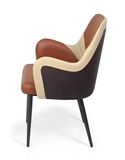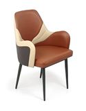 Chất liệu: Ghế tựa lưng liền tay bọc da công nghiệp các màu, chân làm từ ống tròn tóp côn Ø32, sơn tĩnh điện màu đen sần.