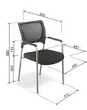 Chất liệu: Khung thép sơn tĩnh điện, Lưng nhựa bọc lưới, Tay ốp nhựa PP