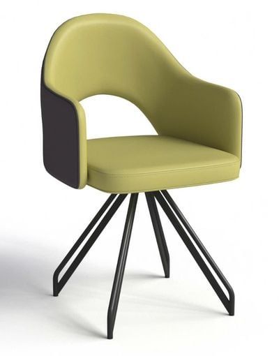 Chất liệu: Ghế tựa lưng liền tay bọc da CN. Chân làm từ ống Ø16 kết hợp với thép hộp 10x20 sơn tĩnh điện đen sần. Cơ chế xoay 90 độ, tự động trả về đúng vị trí đầu tiên.
