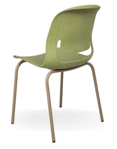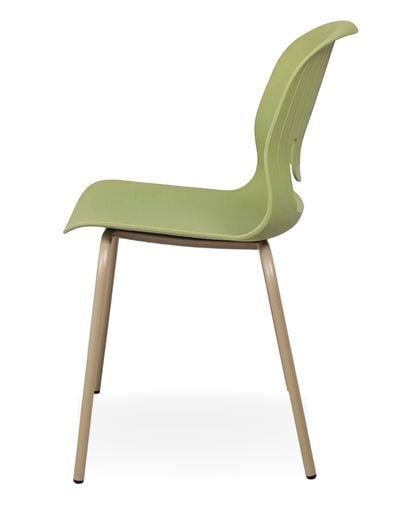 Chất liệu: Ghế tựa khung sơn màu vàng cát/ mạ, mặt ngồi và lưng nhựa màu xanh lá.