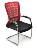 Mặt ngồi bọc lưới, đệm mút dày êm ái, sang trọng, mặt ngồi vát kiểu thác nước giúp người sử dụng có thể ngồi lâu mà không bị tê chân. Đệm bọc vải lưới viền da 2 bên. Chân quỳ thép mạ Ni-Cr.