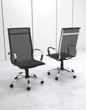Chất liệu: Khung mặt ngồi, tựa lưng, chân sao ghế và tay ghế được làm từ thép cường độ cao, được mạ Niken-crom. Phần tựa lưng và mặt ngồi được làm từ lưới cao cấp, có độ bền cao và tạo sự thoáng mát tránh tích nhiệt khi sử dụng. Đặc biệt, tay ghế được bọc da PU tạo sự êm ái.