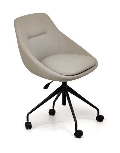 Chất liệu: Ghế xoay lưng và đệm ngồi được đúc mút nguyên khối và bọc da công nghiệp. Chân sao sắt S8, sơn tĩnh điện màu đen sần