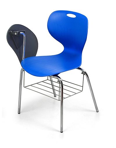 - Ghế tựa khung mạ, mặt ngồi bằng nhựa, có mặt bàn viết và khay để sách.
