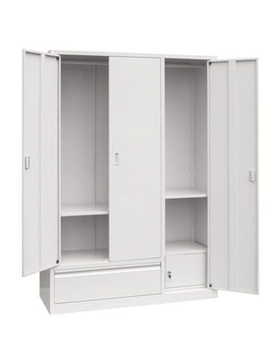 Tủ áo TSA3 được làm từ chất liệu sắt được sơn tĩnh điện với cấu trúc 2 khoang, cánh mở, mỗi khoang tích hợp 1 đợt và 1 suốt treo quần áo đa dụng.